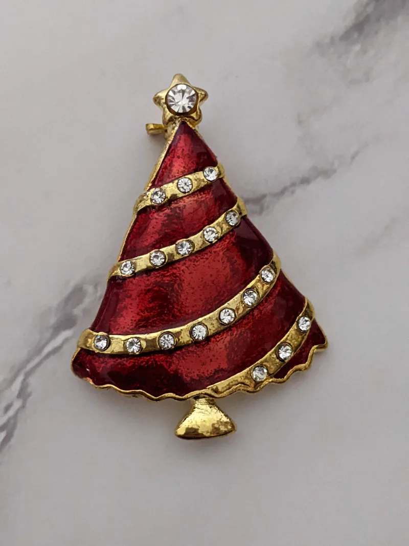 Red Christmas Tree Rhinestone Pin